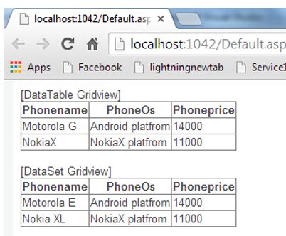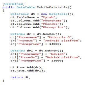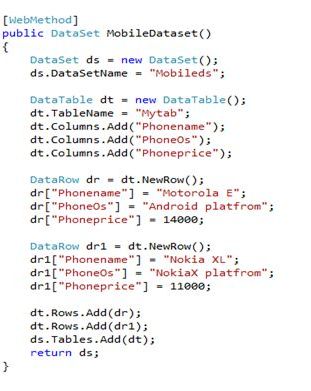 And this Webmethod will return a DataSet. - DataTable code snippet.